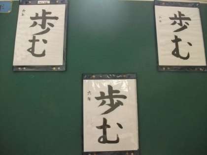 6年生の書写作品が掲示されています。