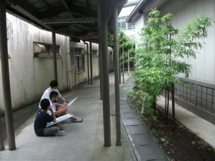 6年生が,校内の景色を写生しています。