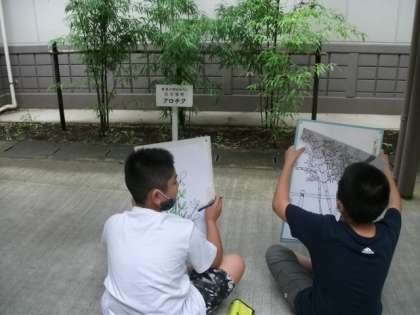 昨年植えたクロチクを丁寧に描いているお友達がいました。