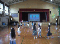 中間休みのダンスタイムです。今日は,40人ほどのお友達が参加してくれました。