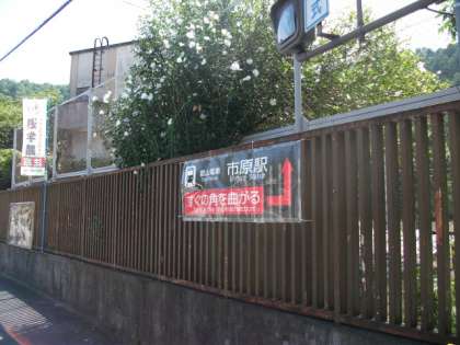 叡山電車は,市原野駅までは通常運行しています。ただ,先日の豪雨によりまだ整備が進んでおらず,鞍馬方面に向かう方は,電車で市原野駅まできて一旦下車し,学校前のバス停留所からバスに乗り換えておられます。来訪された方々が,道に迷わないように,学校の塀に案内表示の設置がありました。