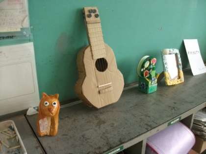 4年生の様子です。教室の後ろのロッカーの上には,夏休み中に取り組んだ工作や観察日記などの力作が並んでいます。