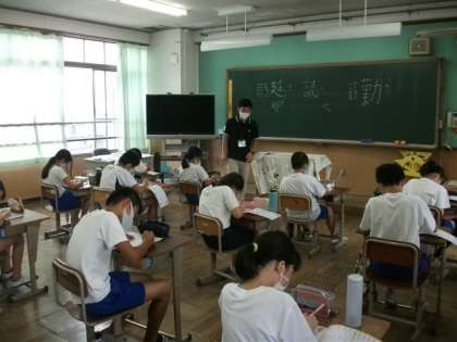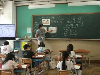 4年生は,算数で水のかさについて学習をしています。6年生は,新出漢字の練習をしています。