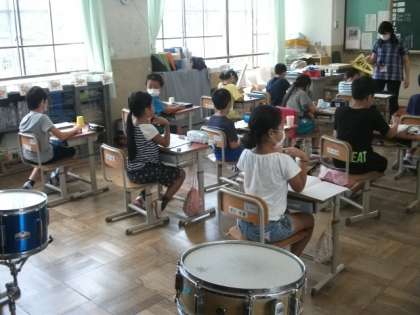 3年生は,糸電話を使ったり小太鼓を使ったりして,音の仕組みについて調べています。