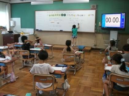 1年生の算数の時間です。「どちらがなんびき多いでしょうか?」図や式を使って考えています。
