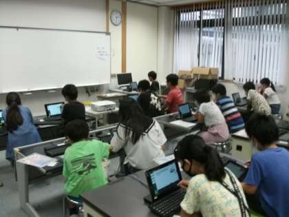 5年生が,PC室で「タブレットドリル」に取り組んでいます。