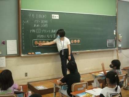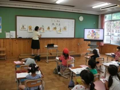 1年生は,国語で「おむすびころりん」のお話を読んでいました。