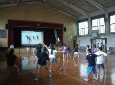 今はやっているアニメソングにあわせて,元気いっぱいに踊っています。