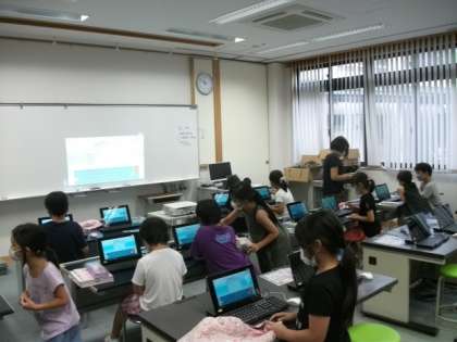 2年生は,PC室で「タブレットドリル」の使い方を学習しています。