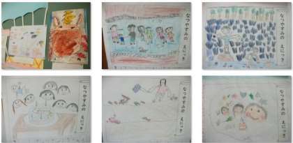1年生の教室には,夏休みの作品とともに,絵日記が掲示されています。