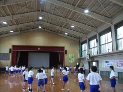 5年生が体育館でダンスに取り組んでいます。