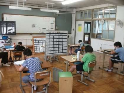 4年生が南中ソーランの練習をしています。ずいぶんそろってきました。3組は個別のプリント学習に取り組んでいます。