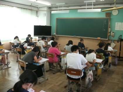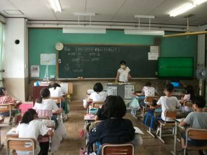 4年生は算数の時間です。6年生はテストの時間です。
