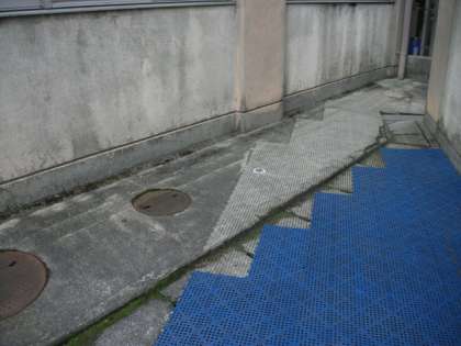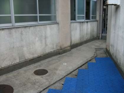 高圧洗浄機で,床面や校舎壁を洗浄しています。