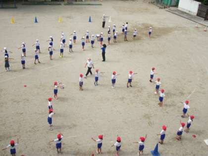 1,2年生は,運動場で初めてダンスの練習をしました。