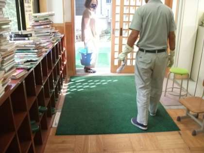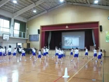 4年生は,体育館でソーラン節を踊っています。並行して,特別棟の消毒作業を始めました。