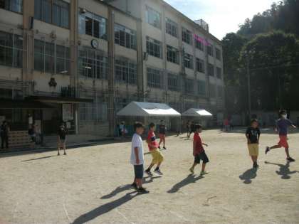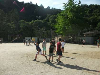 6年生のお友達は,運動場でドッジボールをしています。(できるだけ大きな声を出さないように気を付けているようです。)