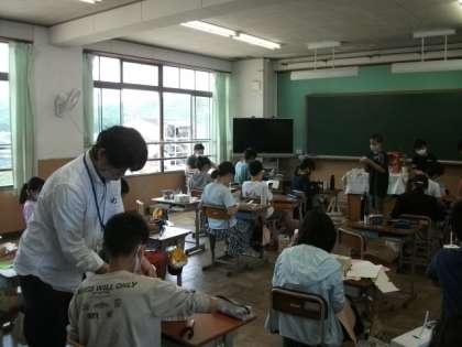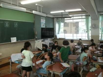 6年生は,図画工作で動く仕掛け作りに取り組んでいます。2年生は漢字の練習が終わりました。