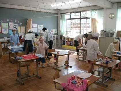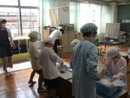 3組は,全員で配膳をしています。