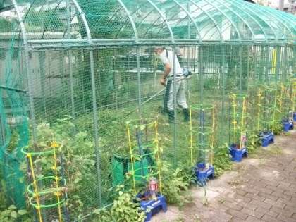 草刈り機で,畑やその周りの整備を進めています。