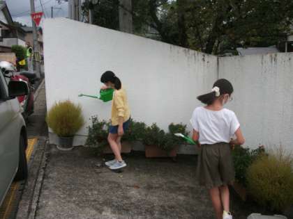 園芸委員会のお友達が,校門前や運動場横の草花に水やりをしてくれています。ありがとう。