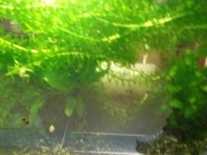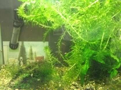 校長室前のメダカ水槽には,黒めだかがおよそ10匹ずつ育っています。
