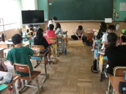 6年生は,動く仕掛けをもとに,作品作りに取り組んでいます。
