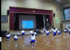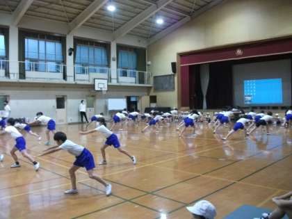 3・4年生が,体育館でソーラン節の練習を進めています。