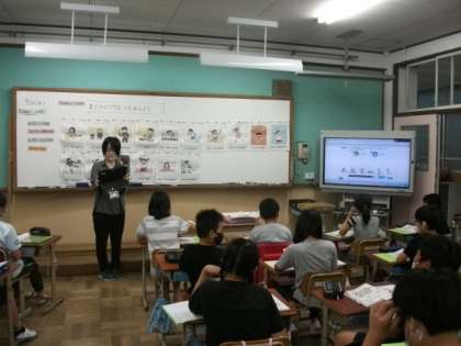 5年生の外国語科の学習の様子です。「友達ができることを伝えよう」というテーマで学習を進めています。今日は,テレビに記されたイラストと音声を手がかりにして,学習を進めています。