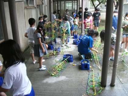 1年生は,生活科で,朝顔のツルをつかい,リースづくりに取り組みます。