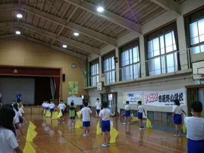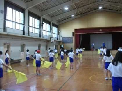 6年生の集団演技の様子です。短時間で,集中して練習をしてきました。