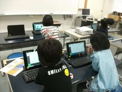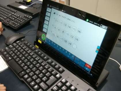タブレットドリルで,算数の図形の問題に取り組んでいるお友達がたくさんいました。