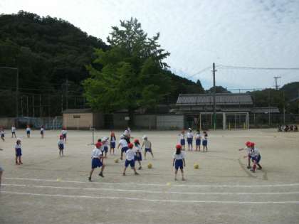 1,2年生は,ボールを使って体育の学習をしています。