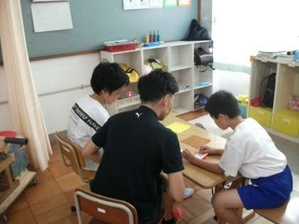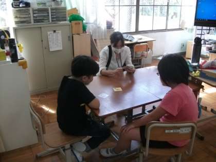 3組は,カードを使ったことばの学習をしたり,折り紙を使って「折る」練習をしていました。角と角を合わせて,きれいに折れていましたね。