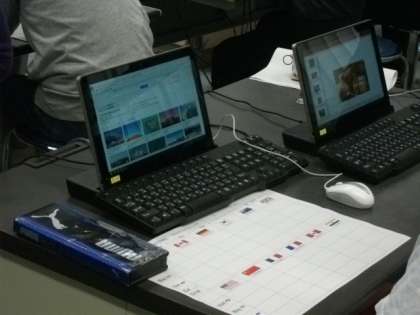 5年生は外国語科の学習を進めています。好きな国の国旗を検索したあと,その画像をプレゼンテーション用の画像に張り付けています。