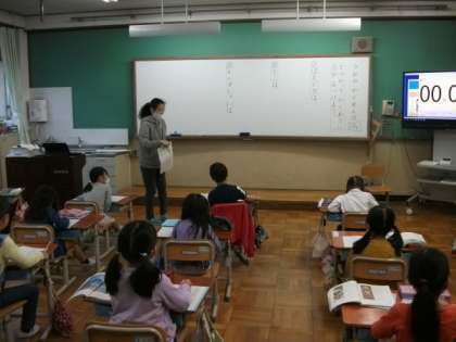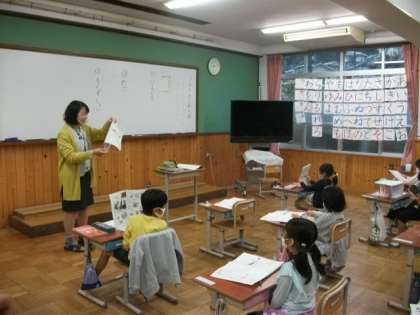 1年生は,朝の会で学年だよりのプリントが配られていました。国語の「うみのかくれんぼ」という題材では,プリントを使って学習を進めています。