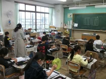 3年生は,習字で自分の名前を書く練習をしています。1年生は鍵盤ハーモニカの演奏に取り組んでいます。