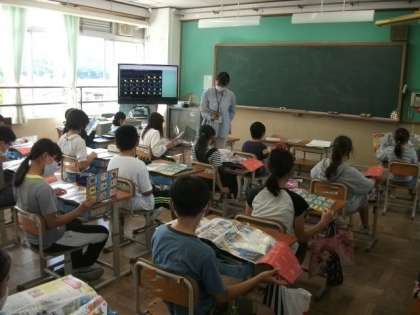 1年生は,リズムに合わせて「おさかな天国」を踊っています。