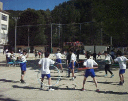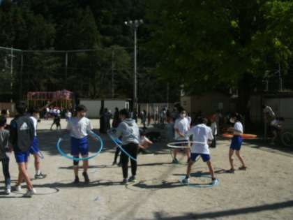 休み時間にフラフープを使っていろいろな動きに挑戦しています。