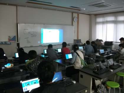 部活動を始めました。書道部とコンピュータ部の様子です。