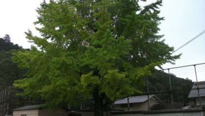 校庭にあるイチョウの木も,東側が少し黄色がかってきました。