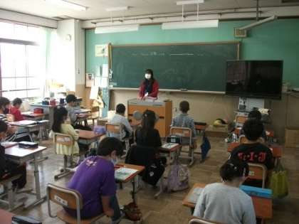 5年生は,理科で,「ものの溶け方」について調べています。3年生は,国語の時間です。