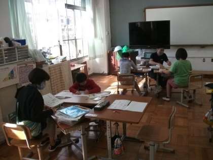 3組は,3時間目はプリント学習に取り組んでいます。6年生は社会科の時間です。