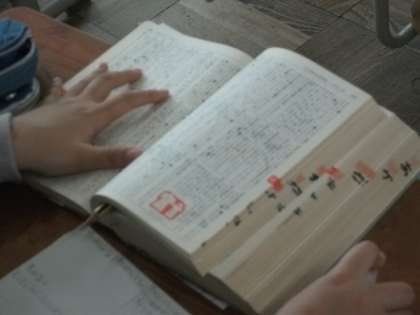4年生は辞書を使って意味調べをしています。