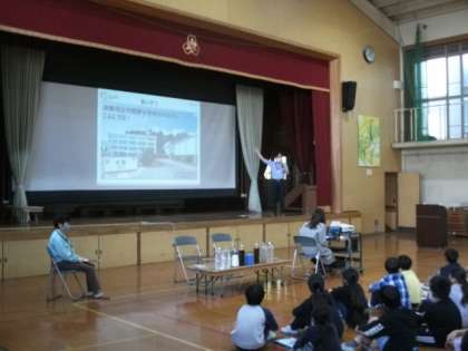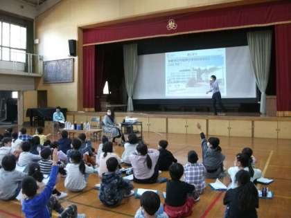 4年生が,環境に関する学習に取り組んでいます。今日は,ゲストティーチャーをお招きしてお話を聞いています。
