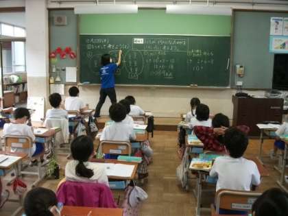 2年生は,算数の時間に,図を使って問題の意味をとらえていました。3組は,用具や場づくりの中で,いろいろな動きに挑戦しています。