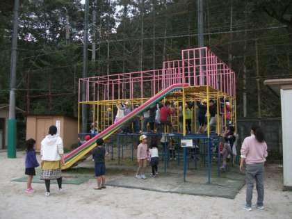 総合遊具の使い方は「3点固定,1点移動」について全校児童に指導をしています。