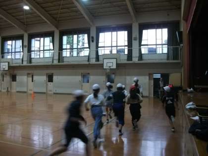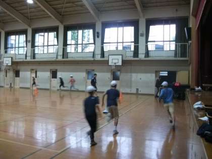雨が降っていますので,登校後の朝ランは,体育館で行いました。