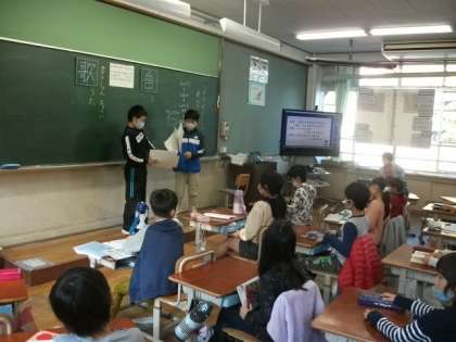 始業前に,保健委員会のお友達が各クラスに標語募集のお知らせを配布しています。