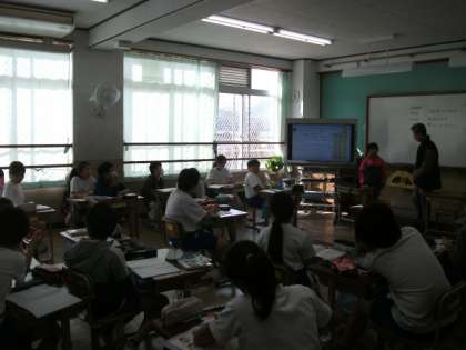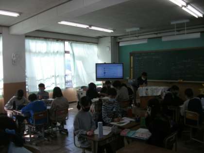 5年生は,算数の学習を進めています。6年生は外国語科の学習です。